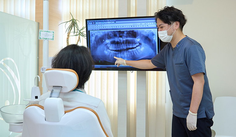 当院では治療を始める前に丁寧な説明をすることをモットーにし、患者さまのご希望にしっかりと耳を傾け、そしてできるかぎり歯を残す「予防」を中心とした治療を提案したいと考えております。