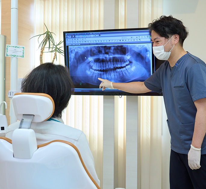 当院では治療を始める前に丁寧な説明をすることをモットーにし、患者さまのご希望にしっかりと耳を傾け、そしてできるかぎり歯を残す「予防」を中心とした治療を提案したいと考えております。